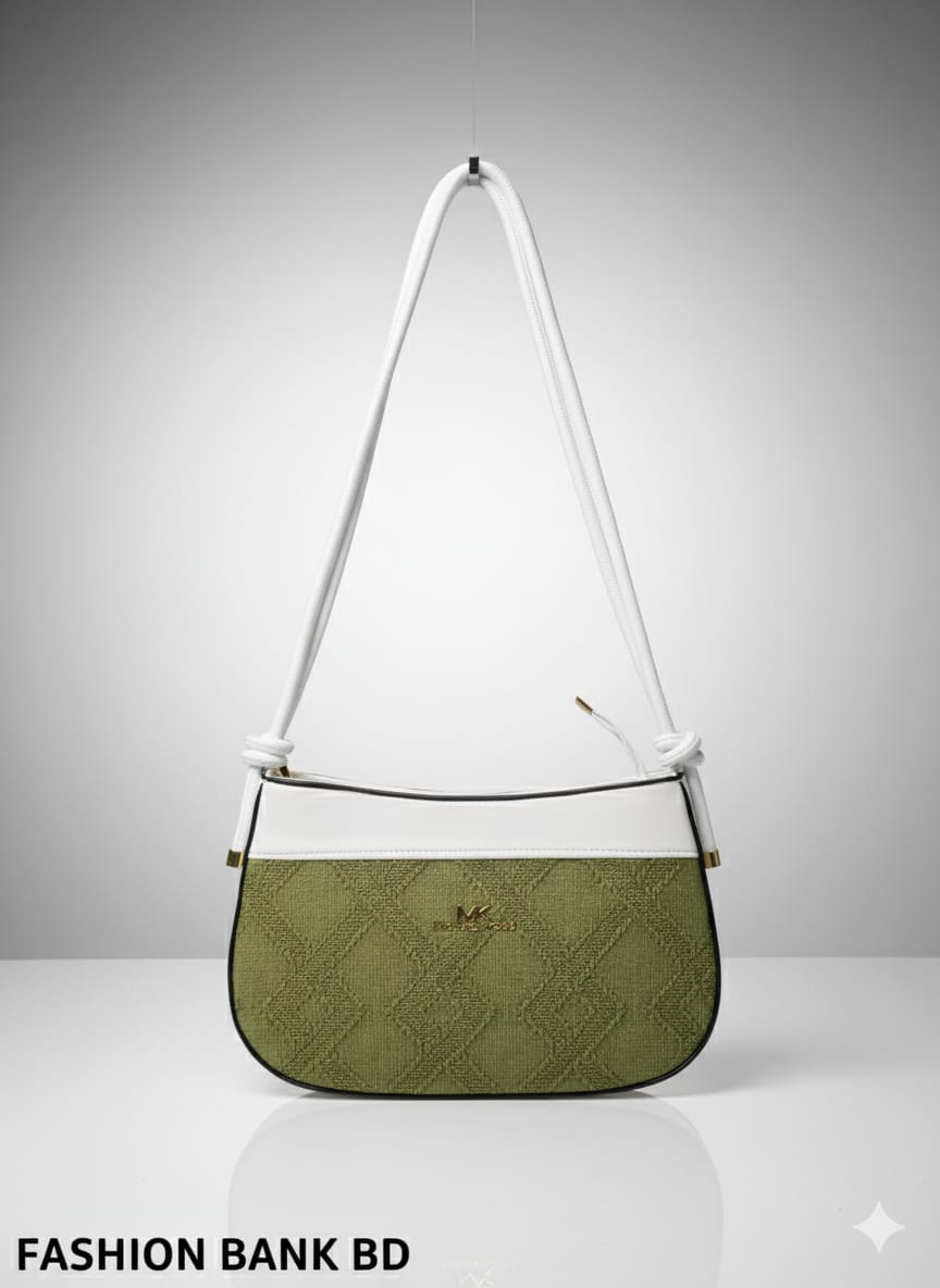 Buy elegant ladies shoulder bag in olive green & white color. Perfect for office, daily & casual use. Premium quality available at Fashion Bank BD.