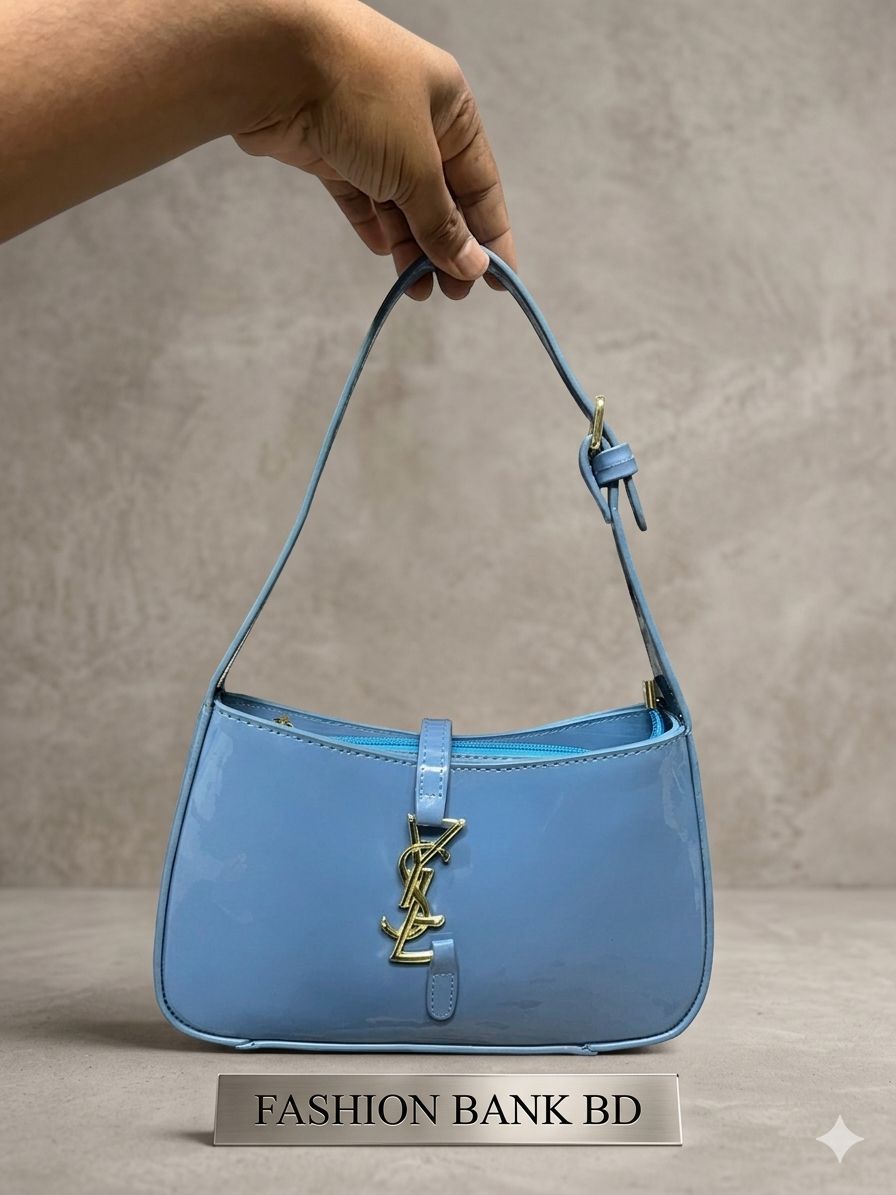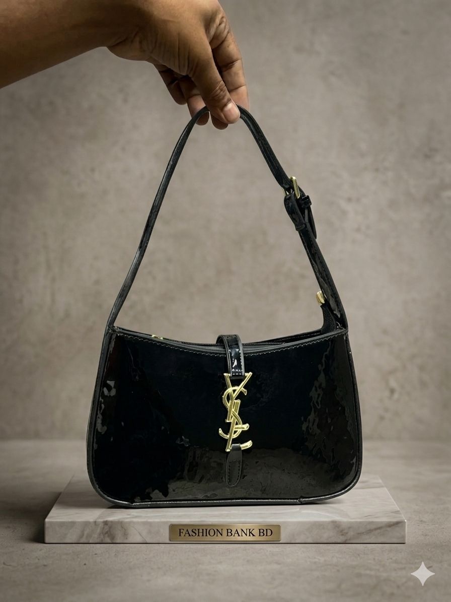 Luxury Glossy Black Shoulder Bag | Elegant Party Ladies Handbag, YSL Luxury