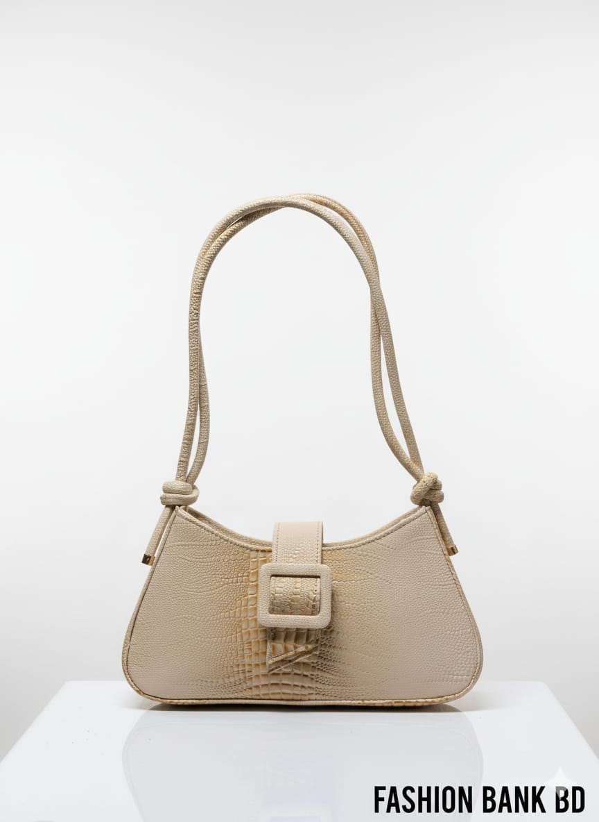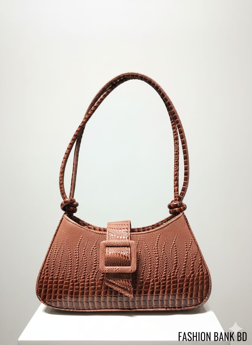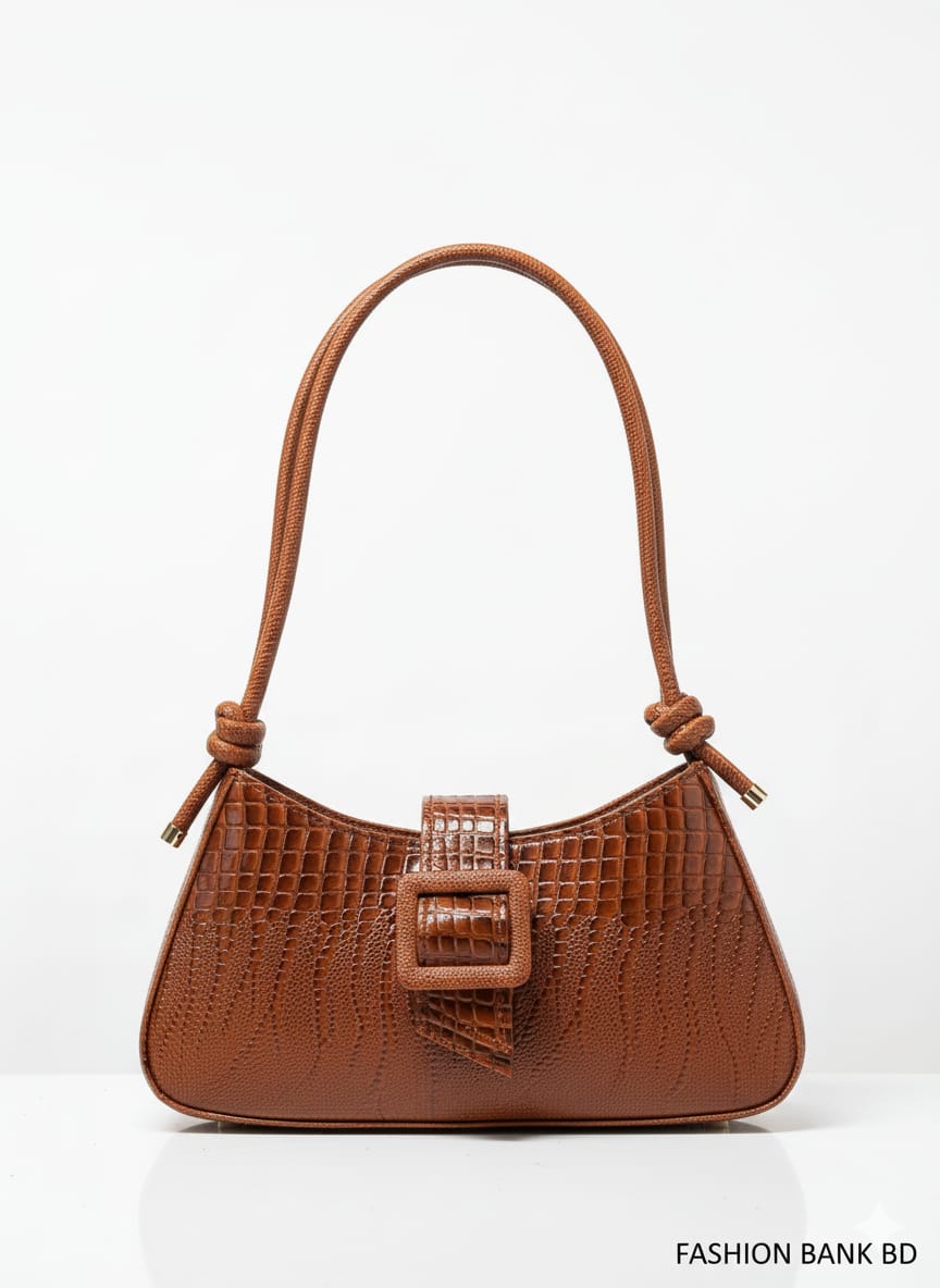 Buy stylish black ladies shoulder bag with premium PU leather and buckle design. Perfect for daily, casual & party use. Fashion Bank BD.